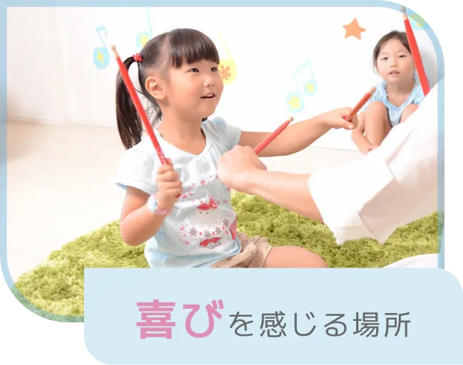 遊びの中で音楽やリズムを感じたり、考えたり、友だちと一緒に学び合ったりする中で、自然と集中力や表現力、協調性が育まれます。
