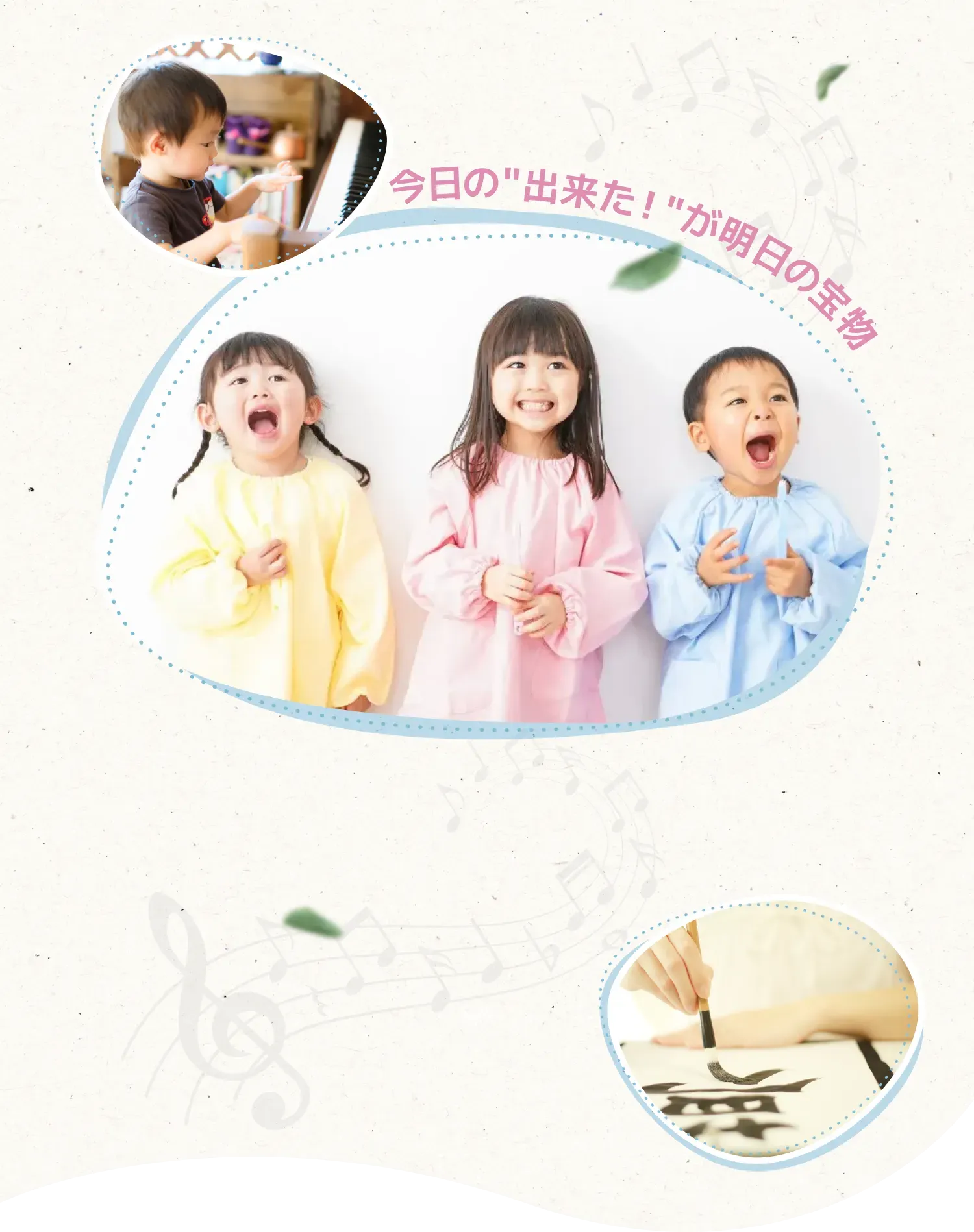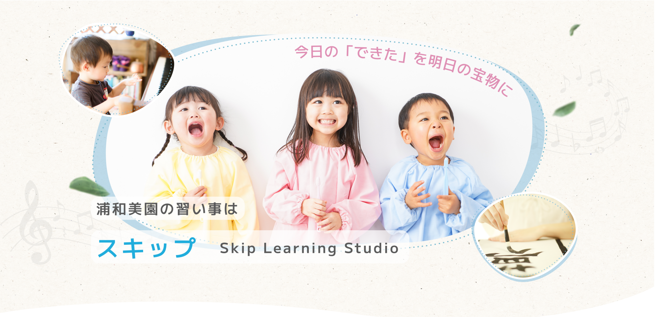 埼玉県緑区・浦和美園という教育熱心な地域で、音楽・知育・書道といった多彩な学びを通じて、楽しさの中に確かな力を育んでまいります。