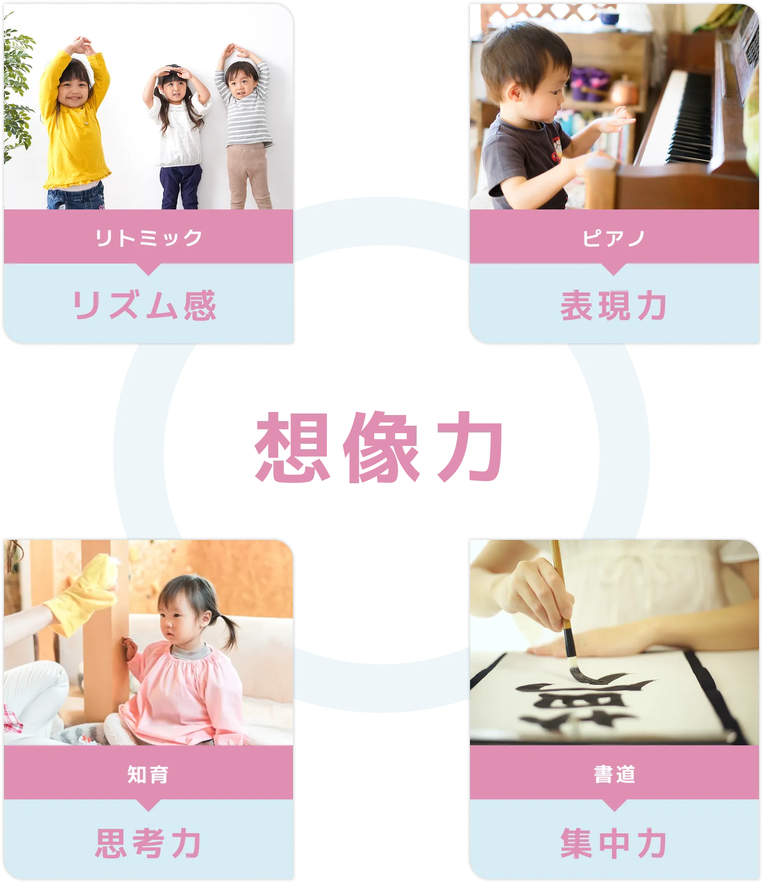 お子様の成長に不可欠な4つの要素を、同じ場所で一貫して学べます!